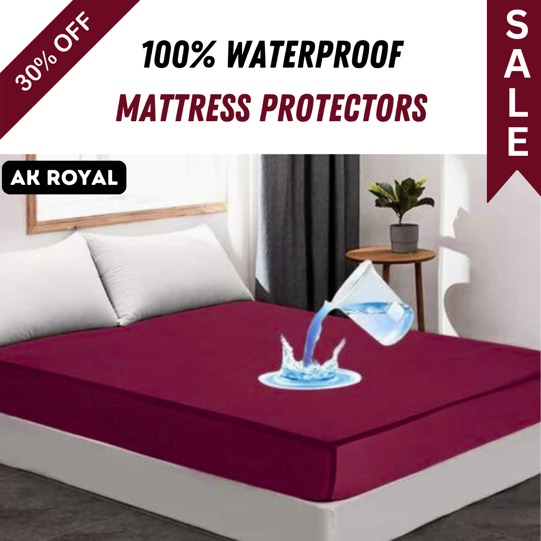 Terry 100% Waterproof Mattress Cover In Maroon Color